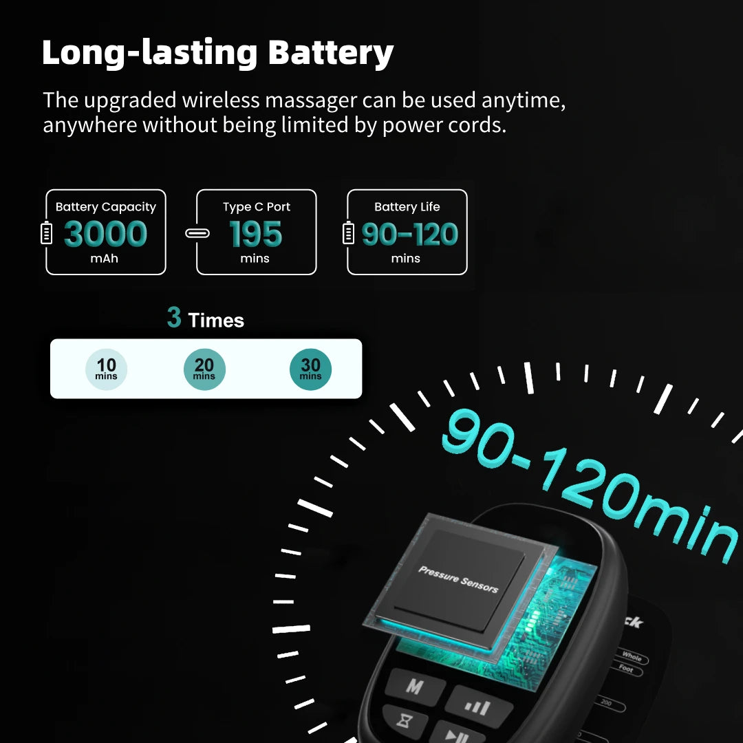 • 6 massage modes, 4 intensity levels, and 3 timers for fully customizable recovery.